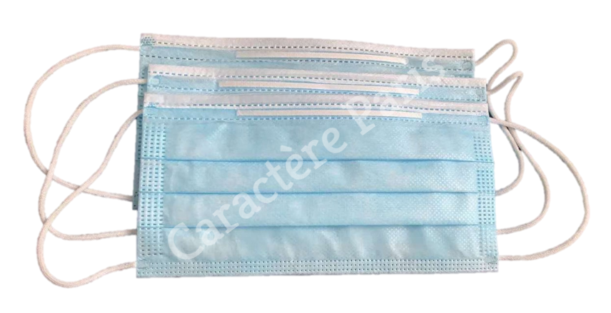 Masque de protection à usage unique, jetable. Bleu - 3 couches - Attache par élastique (sans latex) autour des oreilles. Usage personnel.
